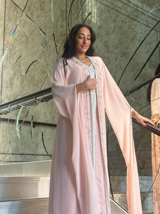 Shiffon sulk caftan with silver hand embroidery